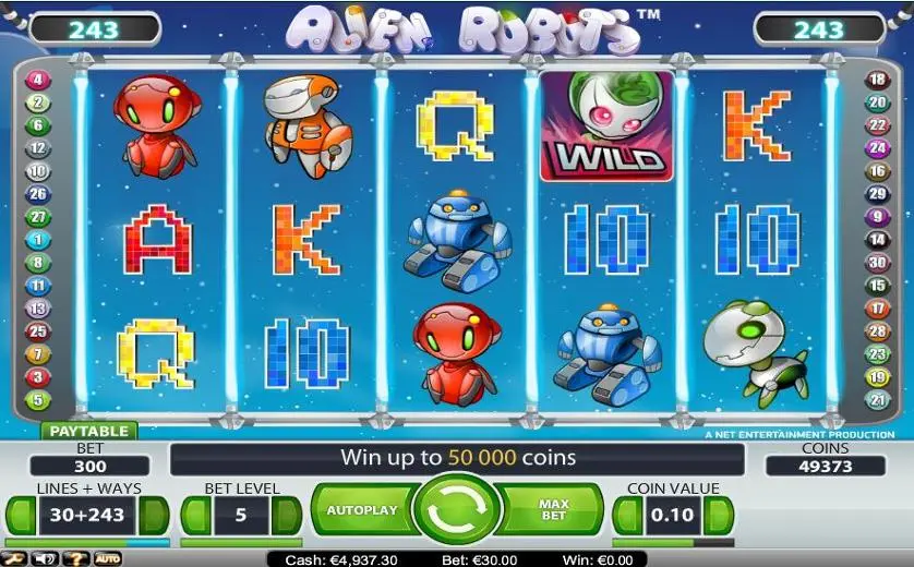 Alien Robots е слот машина от NetEnt. Според броя играчи, които търсят Alien Robots, това не е особено популярен слот. Това не означава непременно, че е лош, така че проверете сами. Или потърсете популярни казино игри.