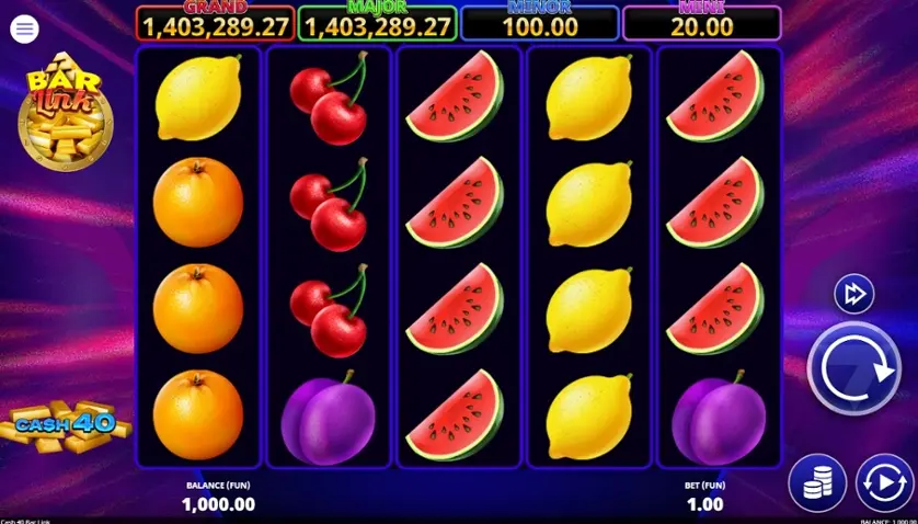 Пробвайте Cash 40 Bar Link слотове онлайн в демо модел, безплатно без регистрация.