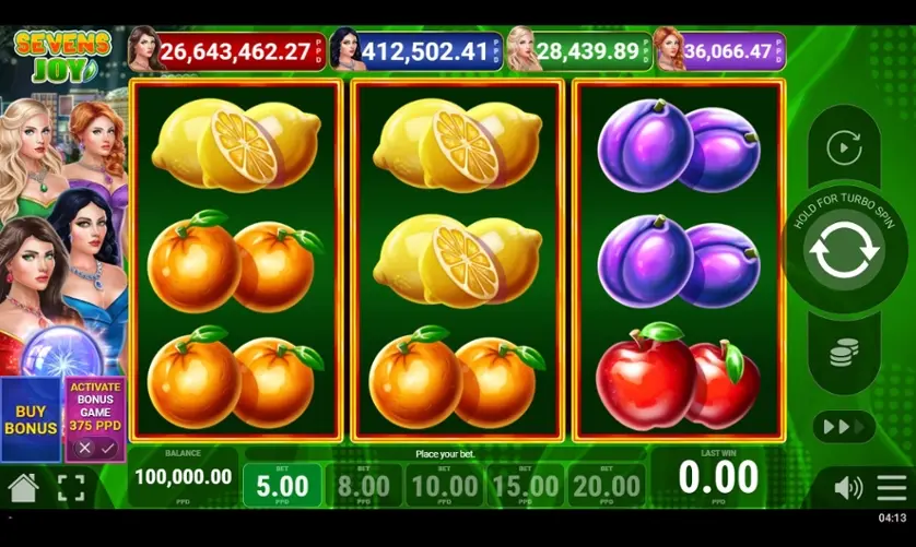 Пробвайте Sevens Joy слотове онлайн в демо модел, безплатно без регистрация.